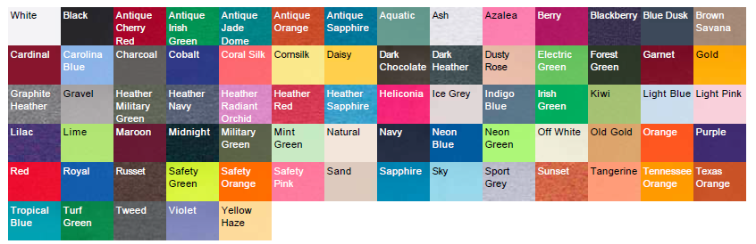 - Antique colors & Sport Grey are 90/10 cotton/polyester